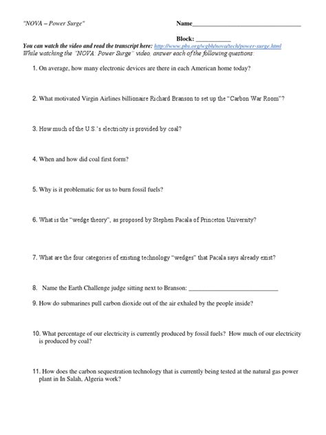 Nova Power Surge Video Worksheet Answers: All You Need to Know