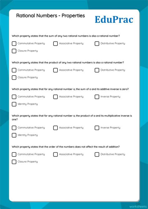 Rational numbers are an essential part of math, and understanding them is key to succeeding in the subject. A properties of rational numbers worksheet can be a great way to get a better handle on how they work and how they are used. This article will provide an overview of the worksheet and how it can help you.